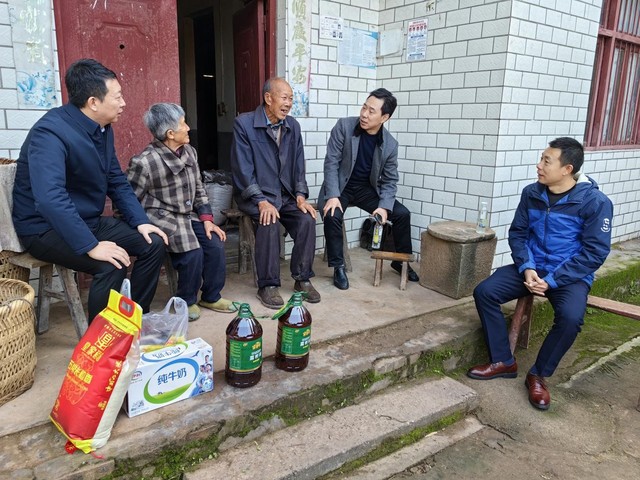 11月19日,副校长郑鈜带领beats365官方网站、招生与就业处部门负责人赴南充市嘉陵区龙蟠镇水堰口村开展调研,了解近期定点帮扶工作并入户慰问结对帮扶对象,南充市嘉陵区人大常委会副主任蒲祥兴、嘉陵区龙蟠镇书记孙伟参加了本次调研工作。